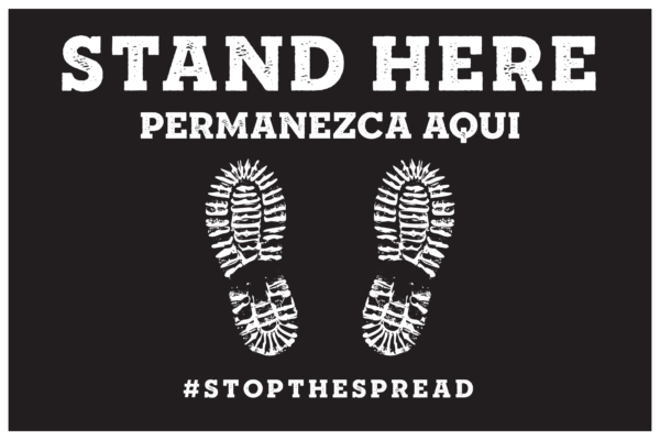 Stand Here, 12″ x 18″ Rectangle, Removable Floor Label, 25 per pack